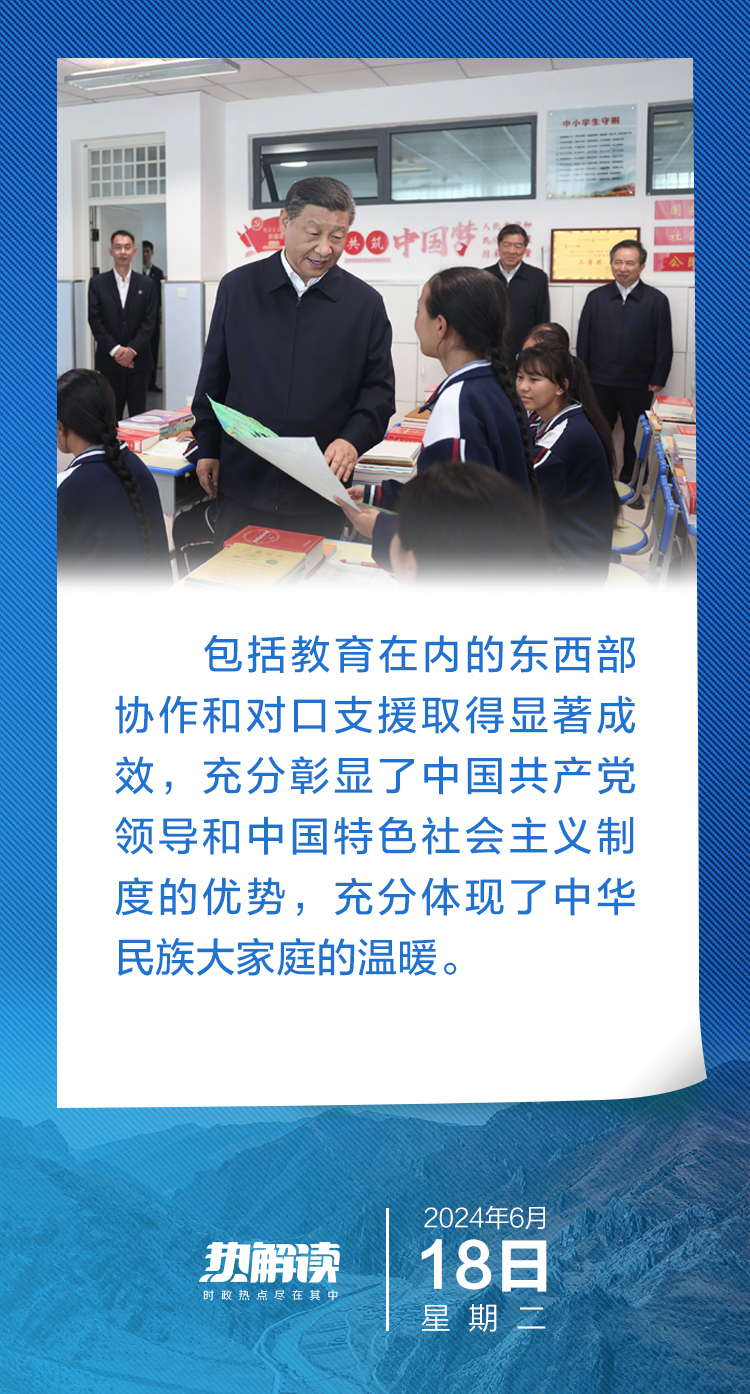 6月18日下午,在青海省考察的习近平总书记,首站来到这所中学看望老师和同学们。他先后走进食堂、宿舍、教室,关心学生们的饮食、住宿、学习……了解当地深入推进教育工作东西部协作和对口支援等情况。