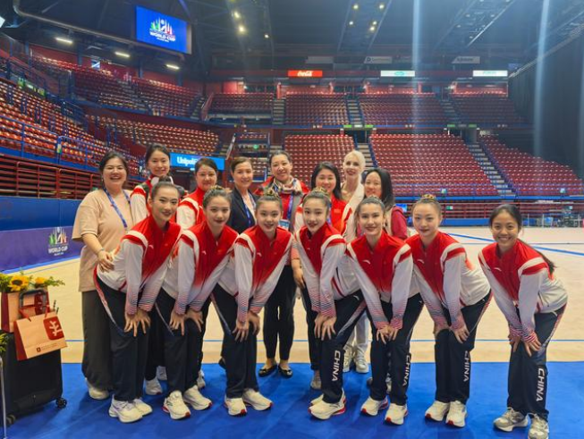 为备战本届世界杯,中国队以巴黎奥运参赛阵容为班底,在集体全能比赛中,中国队集体组5圈项目以节目《共生共舞》获得37.900分排名第三,3带2球项目以节目《凤鸣凌霄》获得32.600分排名第一,全能决赛总分71.600分,以0.1分的优势险胜巴西队夺得冠军。另外,在个人项目方面,王子露获得单项圈操金牌。
