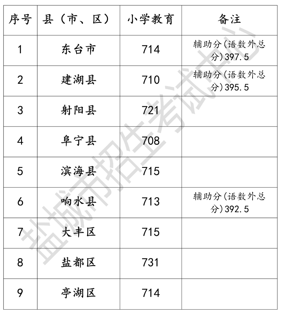 2024年盐城市“七年贯通培养师范定向生”录取分数线公布