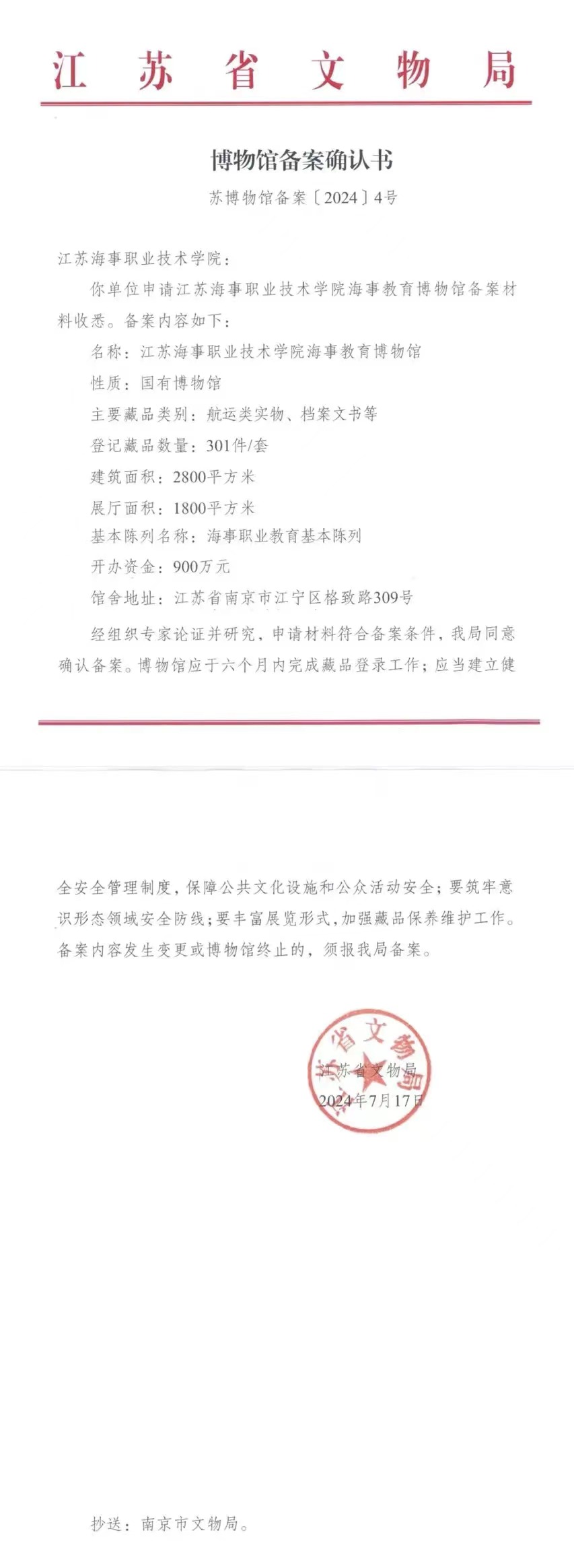 交汇点讯 7月17日,江苏省文物局批复江苏海事职业技术学院申报的“江苏海事职业技术学院海事教育博物馆”为江苏省国有博物馆,这是江苏省设立的首家海事教育类博物馆,也是江苏省唯一一所高职院校获批备案的国有博物馆。