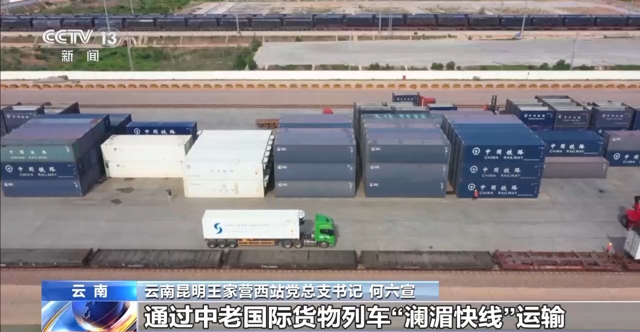 云南昆明王家营西站党总支书记 何六宣:原来(从)万象站装车到昆明,大概要4天左右的时间。通过中老国际货物列车“澜湄快线”运输,时间压缩到26个小时左右。