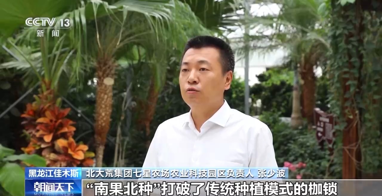 北大荒集团七星农场农业科技园区负责人 张少波:我们园区今年共开展各类试验示范项目57项,“南果北种”打破了传统种植模式的枷锁,进一步激活农业发展新动能。