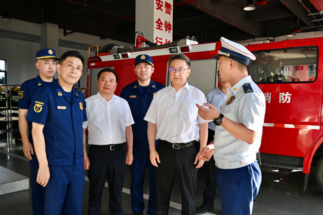 安全是发展的前提。周斌来到响水县气象预警中心,察看中心运行情况,听取相关工作介绍,强调要用好“一中心三张网”气象灾害防御机制,坚持“气象+”赋能,不断提升气象服务保障能力。烈日炎炎,灌江路政府专职消防救援队的消防员们仍在坚守救援和训练岗位。周斌向大家致以诚挚慰问,要求强化防的责任,提升救的能力,练就“看家本领”,切实保障人民群众生命财产安全。在响水爱琴海购物中心,周斌深入商铺、餐饮等场所,随机检查消防控制室值班值守、消防安全设施设备运行情况,要求严格落实各方责任,完善应急预案,畅通“生命通道”,做好应急培训,提升消防安全保障能力。