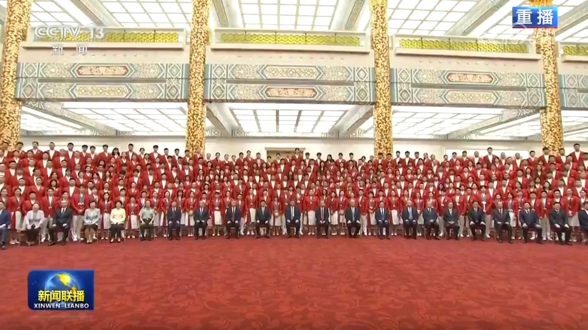 习近平指出,中国体育代表团的优异成绩,将中华体育精神和奥林匹克精神发扬光大,让中华民族精神和时代精神交相辉映,生动诠释了新时代中国精神。赛场上,大家牢记党和人民重托,“国家荣誉永远超过个人”、“我的这块金牌献给伟大的祖国”等誓言掷地有声,展现了祖国至上、为国争光的赤子情怀,展现了顽强拼搏、自强不息的必胜信念,展现了团结协作、并肩作战的宝贵品质,展现了中国青年一代自信乐观、热情友好的阳光气质。你们让全世界看到了中华优秀传统文化的深厚积淀,看到了中国开放包容、昂扬进取的时代风貌,看到了中国人民的志气、锐气和底气。祖国和人民为你们骄傲,为你们点赞。