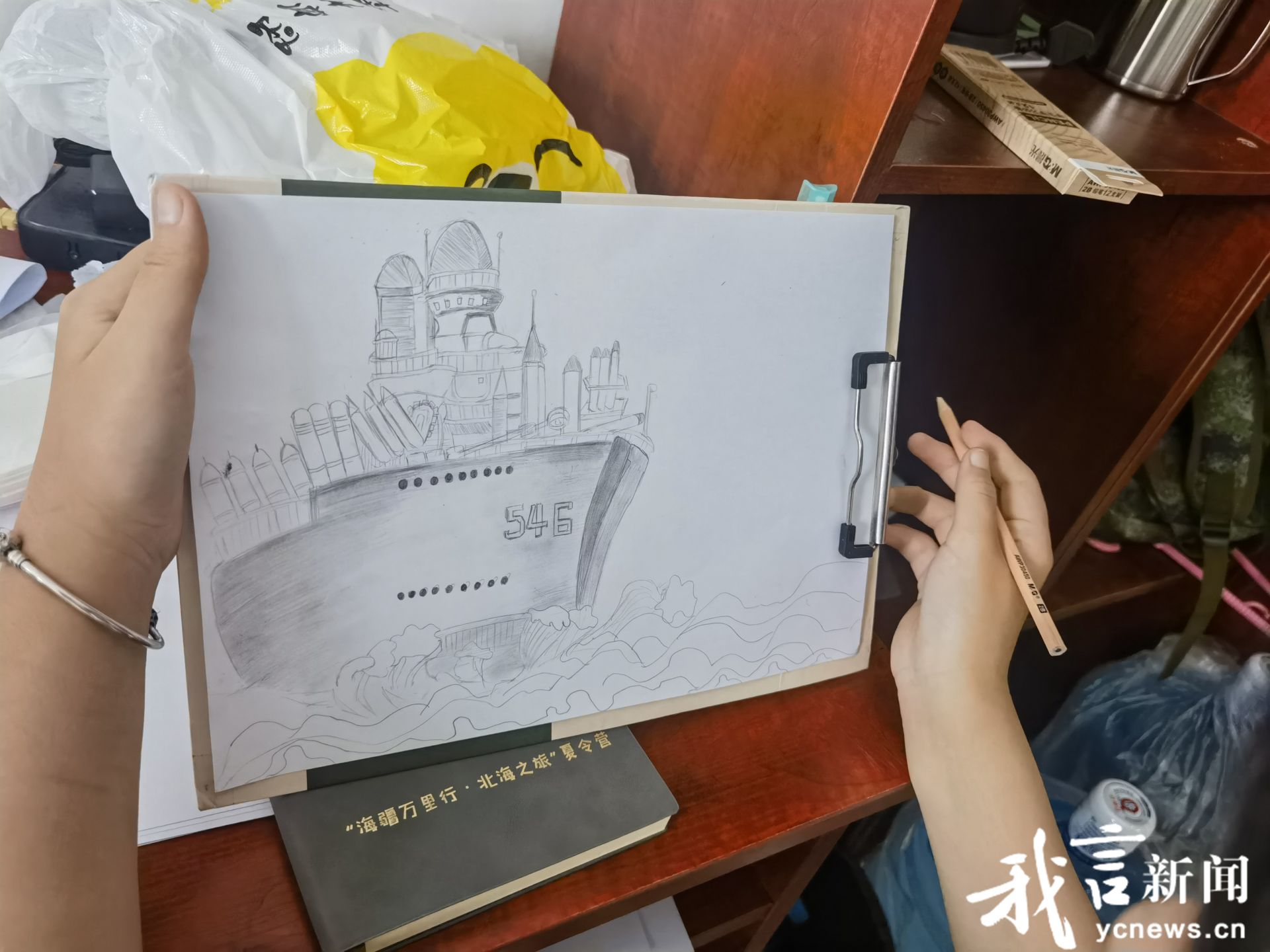 午餐时间,盐城舰的餐厅里洋溢着欢声笑语。孩子们代表盐城人民向官兵们致以诚挚的敬礼,表达对他们辛勤付出的感激之情。孩子们通过朗诵《读中国》、男声小合唱《明天就要上战场》以及女声小合唱《一路生花》等节目表达爱国情怀,并绘制了十幅图画为舰艇官兵送上祝福。大家还一起动手包水饺,祝愿盐城舰的官兵们能够顺利完成各项战斗任务。