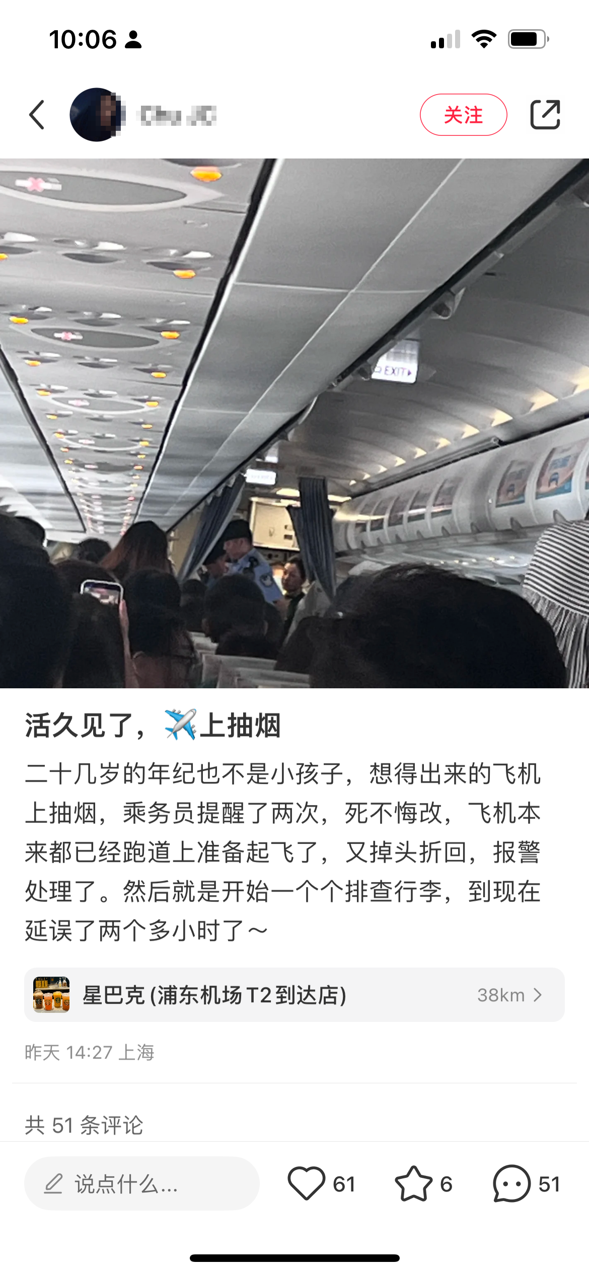 一旅客在上海飞首尔航班上吸电子烟,航司:劝阻无效被警方带下飞机