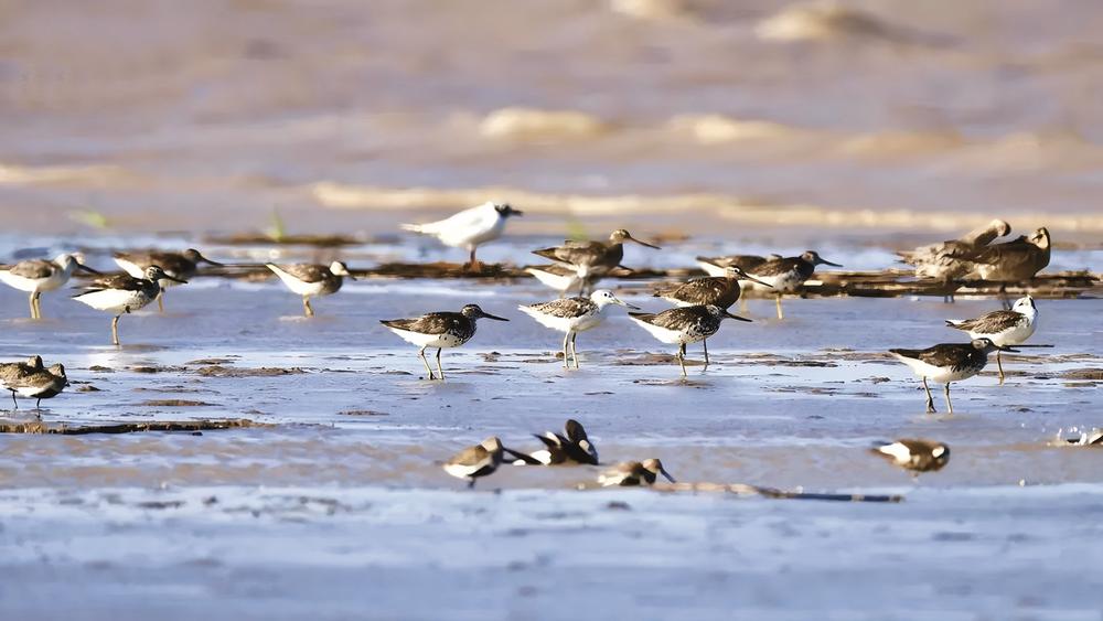 据悉,此次调查记录到的“秋迁大军”,还包括蒙古沙鸻、黑腹滨鹬、白腰杓鹬、灰斑鸻、大杓鹬等30多个鸻鹬类品种。作为东亚—澳大利西亚候鸟迁飞通道的中心节点,整个条子泥区域,调查到超过30万只水鸟,系迄今为止最大值。这些当中的许多种类,将在条子泥待上2至3个月,等完成换羽后继续迁往南方越冬地。