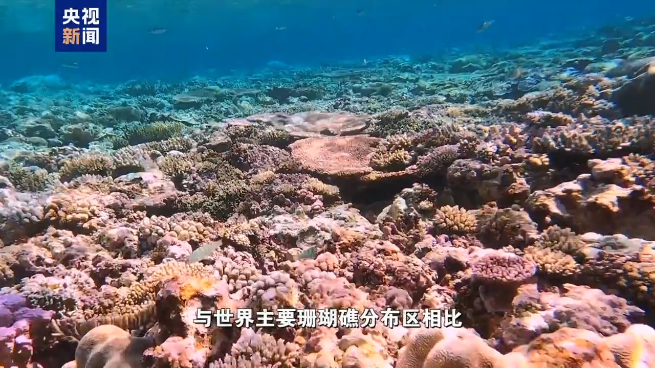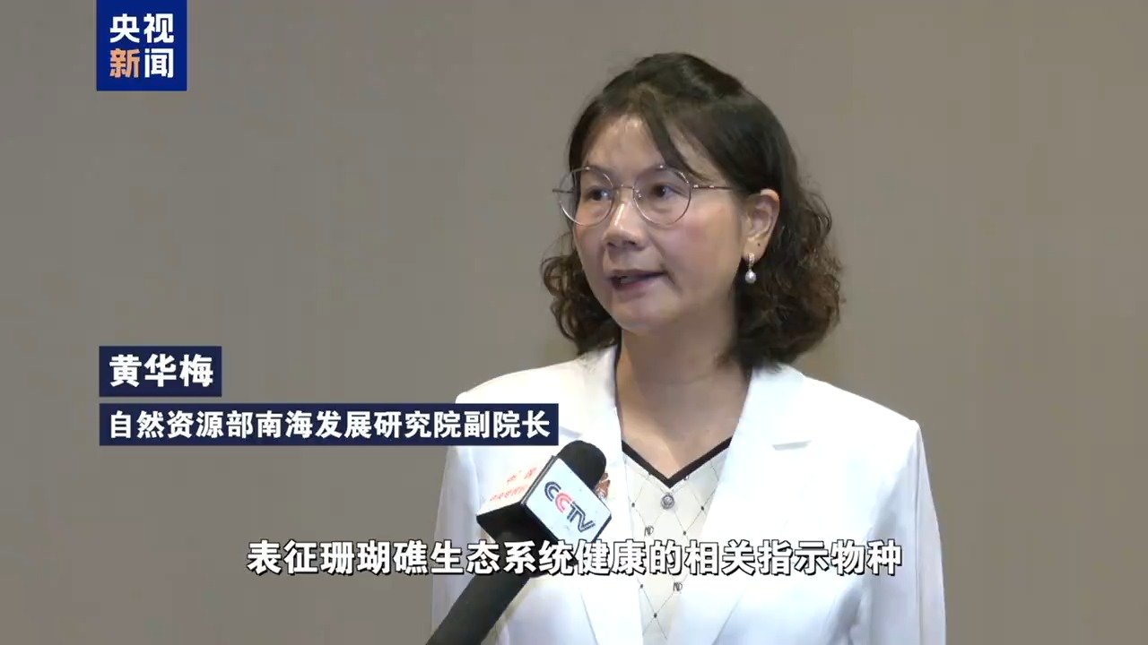 自然资源部南海发展研究院副院长 黄华梅:发现砗磲、唐冠螺等表征珊瑚礁生态系统健康的相关指示物种,以及绿海龟、玳瑁、长吻原海豚等珍稀生物,礁区关键生境指标值处于珊瑚适宜生长范围。