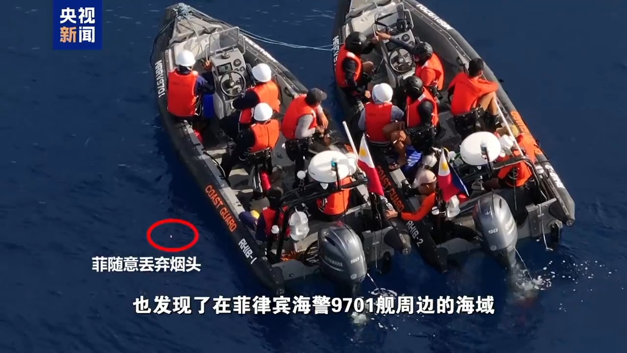 自然资源部南海生态中心高级工程师 熊小飞:受到波浪还有海流等作用影响,船锚还有锚链会对周边的礁体造成持续破坏,他们也多次频繁地派出小艇在周边的礁盘上活动,我们在现场调查也发现了在菲律宾海警9701舰周边的海域,发现了带有菲律宾标志的垃圾。为了更加准确、全面地评估菲律宾海警9701舰对仙宾礁珊瑚礁生态系统的影响,我们还需要进一步地、近距离地去进行调查评估。