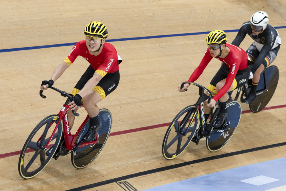 资料图:2024年3月,中国选手梁伟聪(左)、李樟煜(中)在比赛中。新华社记者 王天聪 摄