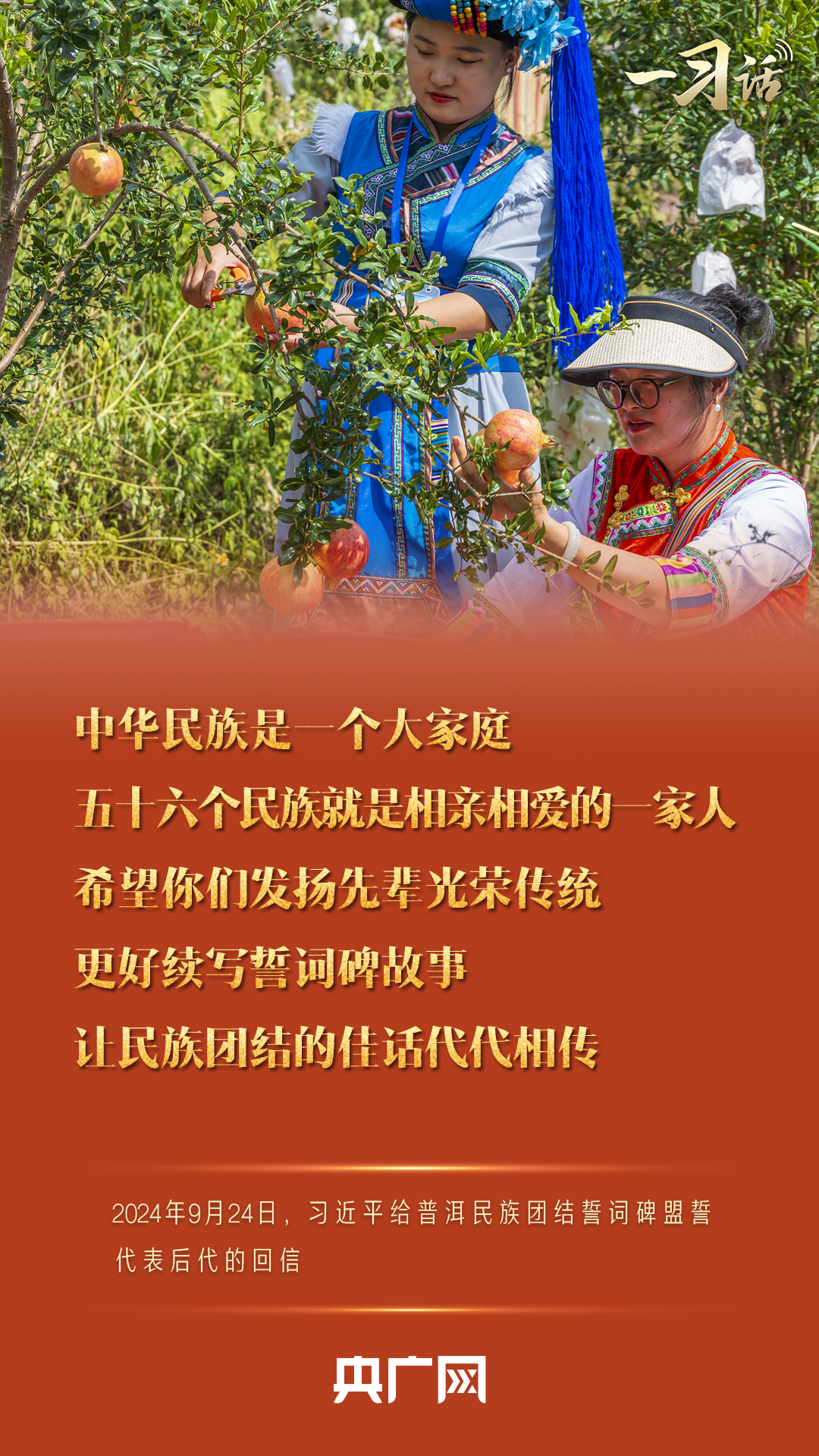 中华民族是一个大家庭,56个民族正如一粒粒“石榴籽”一样,紧紧抱在一起。我们要在铸牢中华民族共同体意识、增强中华民族凝聚力的伟大实践中,要像一家人那样相互理解、尊重、信任,携手同心、开拓进取,构筑起我们坚不可摧的民族团结之桥,为以中国式现代化全面推进强国建设、民族复兴伟业凝聚力量,共创中华民族更加美好的明天。
