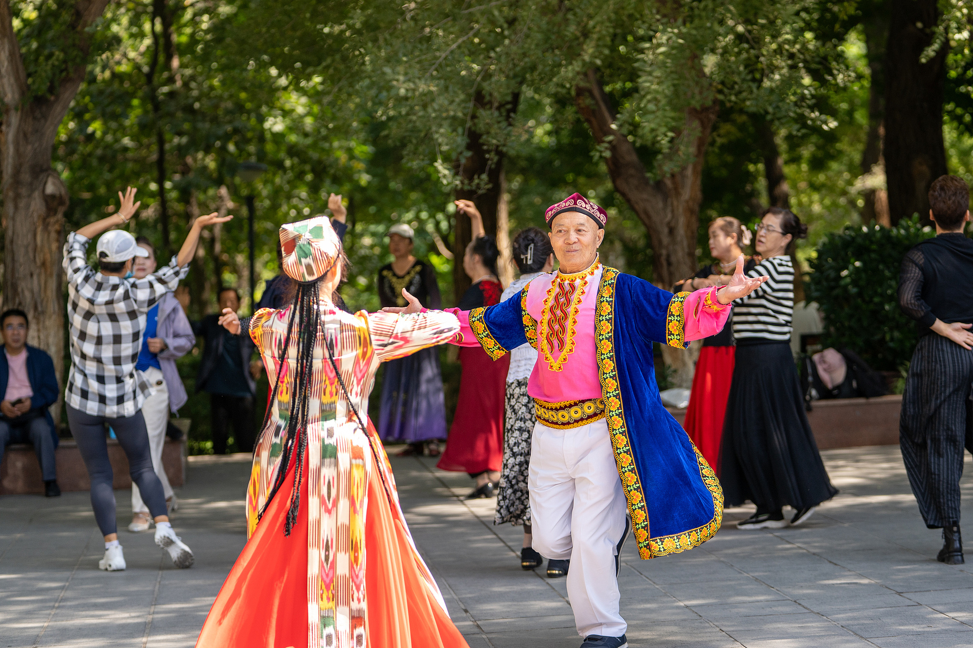 新疆乌鲁木齐,公园里跳舞的市民