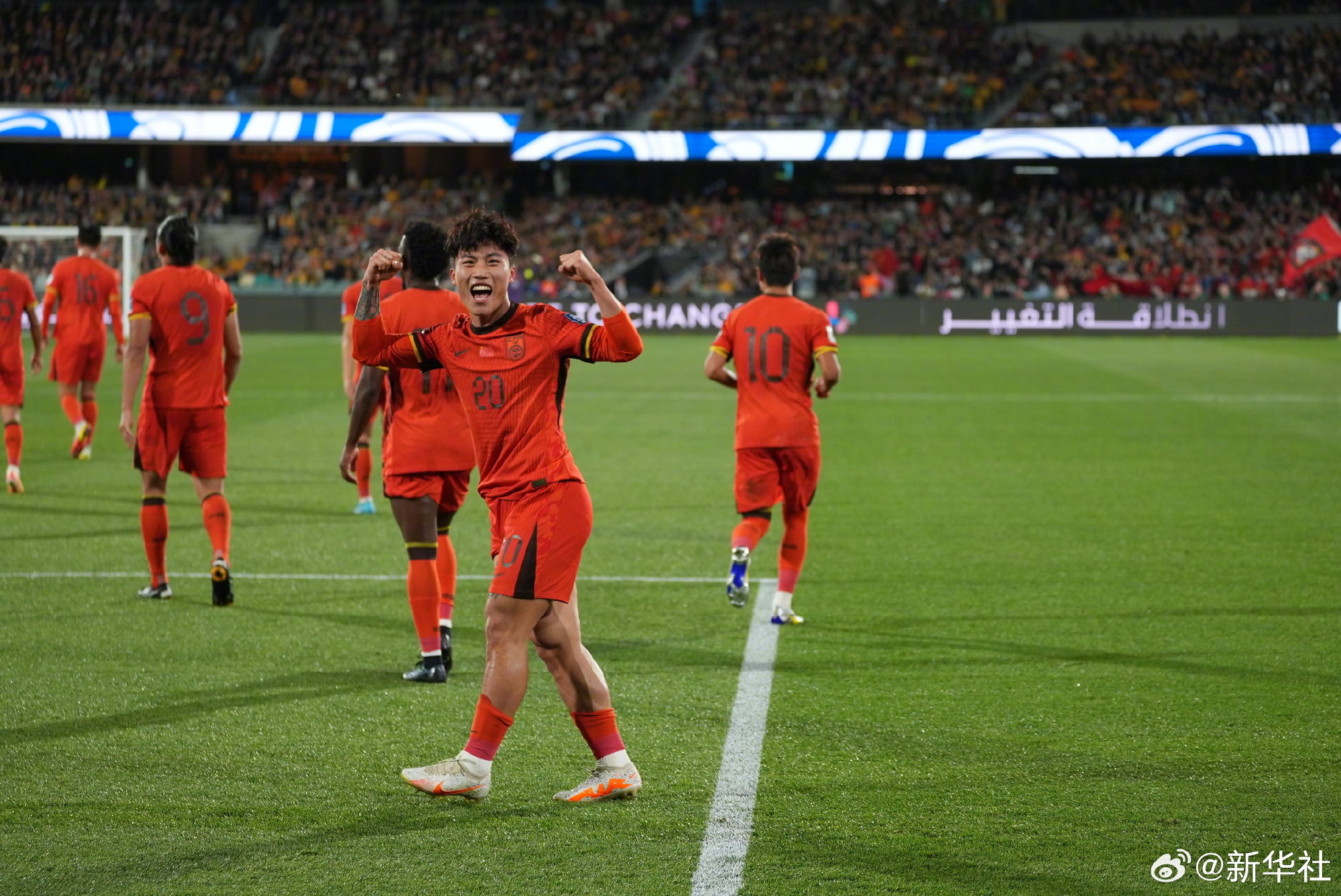 比赛开始后,主场作战的澳大利亚队逐渐掌握了场上主动,控球率高达80%以上。不过,中国队凭借一次直接的攻势率先打破僵局。第20分钟,王大雷在后场起长传,张玉宁头球摆渡给高速前插的谢文能,后者闯入禁区左脚抽射直入右下角,收获了自己在国家队的首粒正式比赛进球。
