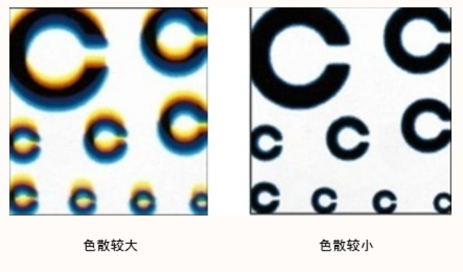如果镜片色散较大,成像质量会受影响,可能导致视觉模糊或出现彩虹纹。