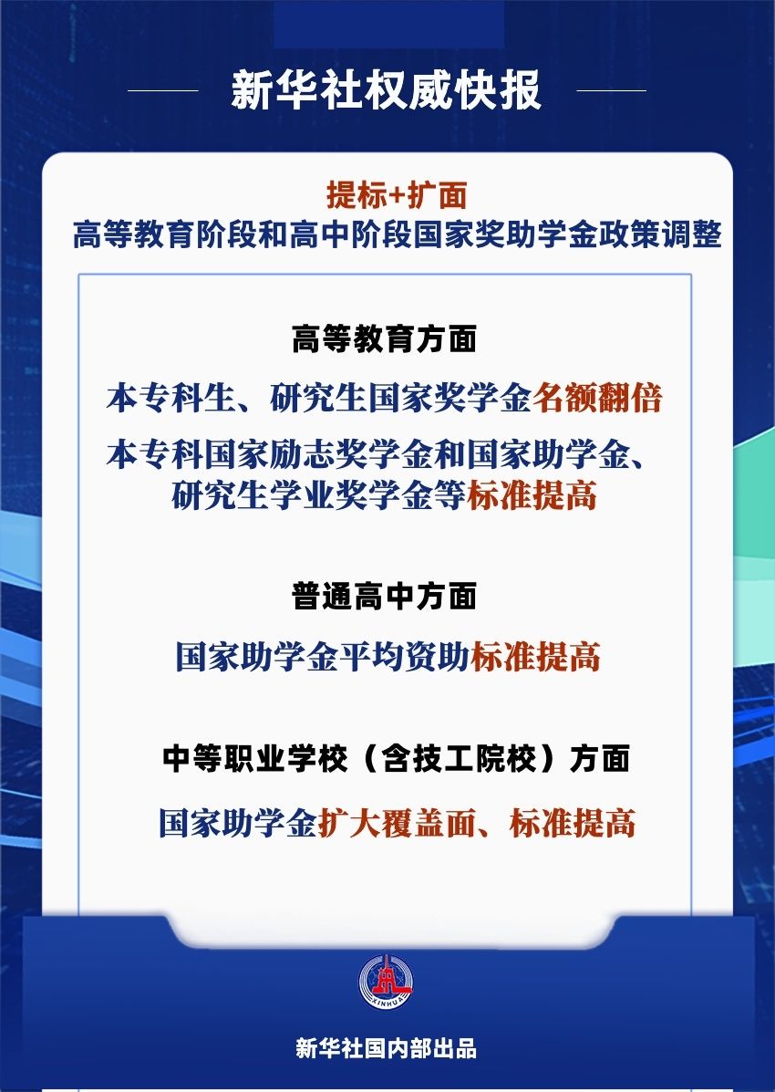 此次学生资助政策调整将用更大力度奖优助困、更多覆盖学生群体,将进一步完善覆盖全学段学生资助体系,落实党中央、国务院关于一揽子增量政策有关部署。