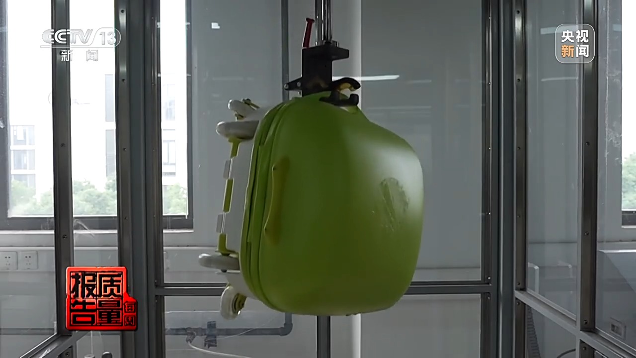 上海市质检院箱包实验室工程师 陈雅华:儿童骑行箱理论上应该也必须有制动装置,那么我们做风险监测的时候就发现相当一部分的儿童骑行箱是没有制动装置的,就会有可能在斜坡上会有意外滑行造成摔伤。