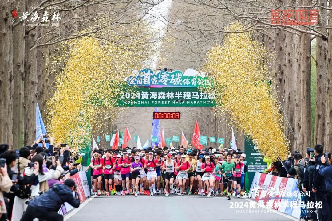 2024年3月31日,黄海森林半程马拉松鸣枪起跑。4000 多名选手奔赴而来,在森林最美赛道上挥洒汗水。运动健将们风驰电掣,初跑者们咬牙坚持,他们用脚步丈量森林之美,身影穿梭在绿树繁花间,成为一道活力四射的风景线,也跑出了黄海森林的热情与活力。