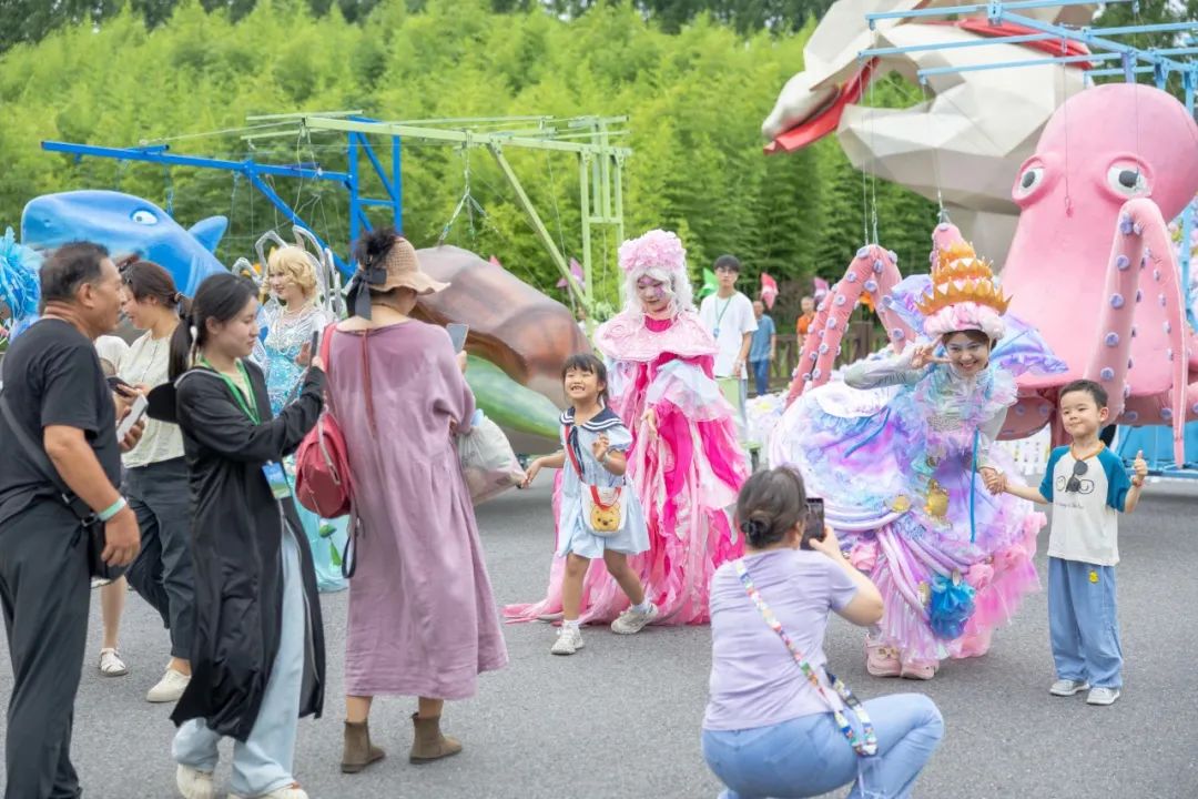 2024年7月6日,低五度亲子纳凉季开启。木偶巡游剧妙趣横生,孩子们在水中嬉戏玩耍,一家人品尝着美食,在炎炎夏日里享受着黄海森林的清凉与温馨,亲子间的欢乐在这片森林中弥漫。