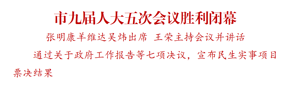 1月15日下午,市九届人大五次会议圆满完成各项议程后胜利闭幕。