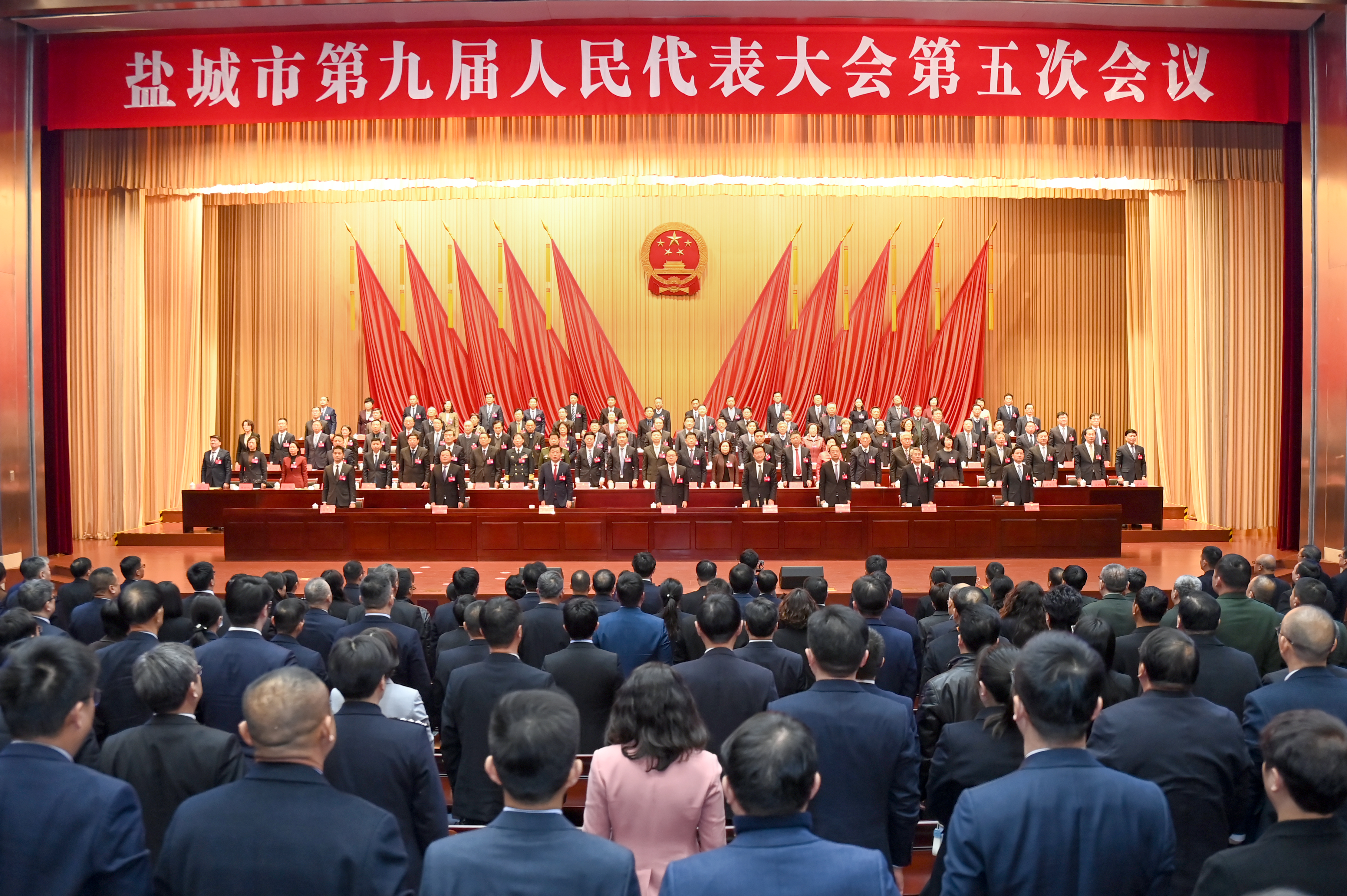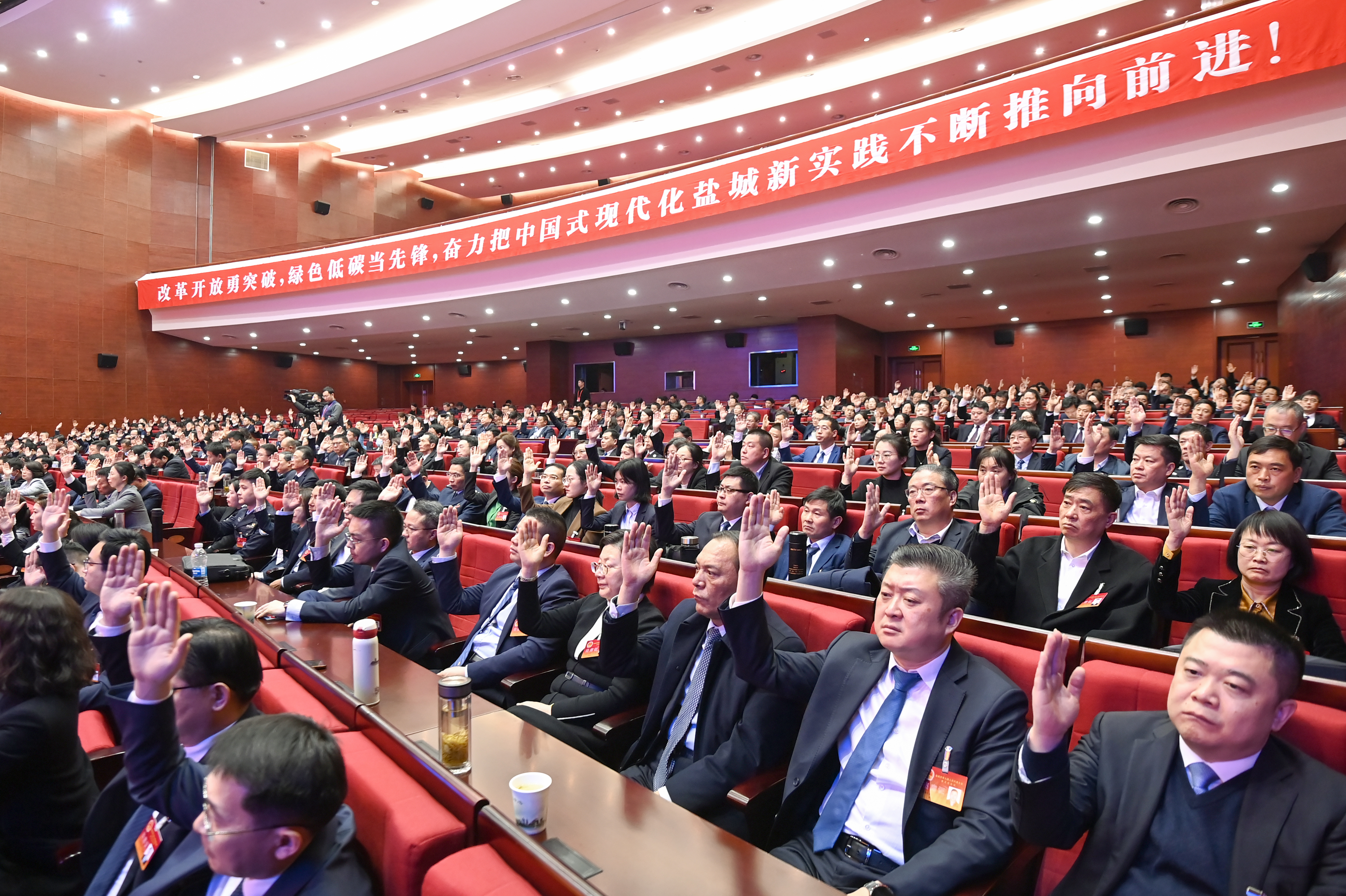 王荣在讲话中说,经过全体代表和与会同志的共同努力,盐城市第九届人民代表大会第五次会议圆满完成了各项议程。会议期间,全体代表充分发扬民主、依法履职尽责、积极建言献策,展现了良好的精神风貌和强烈的责任担当,是一次高举旗帜、凝心聚力、求真务实、风清气正的大会。