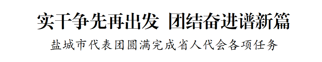 1月22日下午,省十四届人大三次会议圆满完成各项议程,在南京胜利闭幕。盐城市代表团全体代表表示,将坚持以习近平新时代中国特色社会主义思想为指导,认真落实省两会精神,按照省委书记信长星在省政协十三届三次会议开幕会上和省长许昆林参加盐城市代表团审议时的讲话要求,传承发扬不怕困难、不畏艰险,勇于斗争、敢于胜利的精神,深入推进“四个三”工作布局,进一步坚定信心、激发干劲、实干争先,一步一个脚印把省委、省政府各项决策部署落实到位,以新的发展实绩为全省“勇挑大梁”多作贡献。