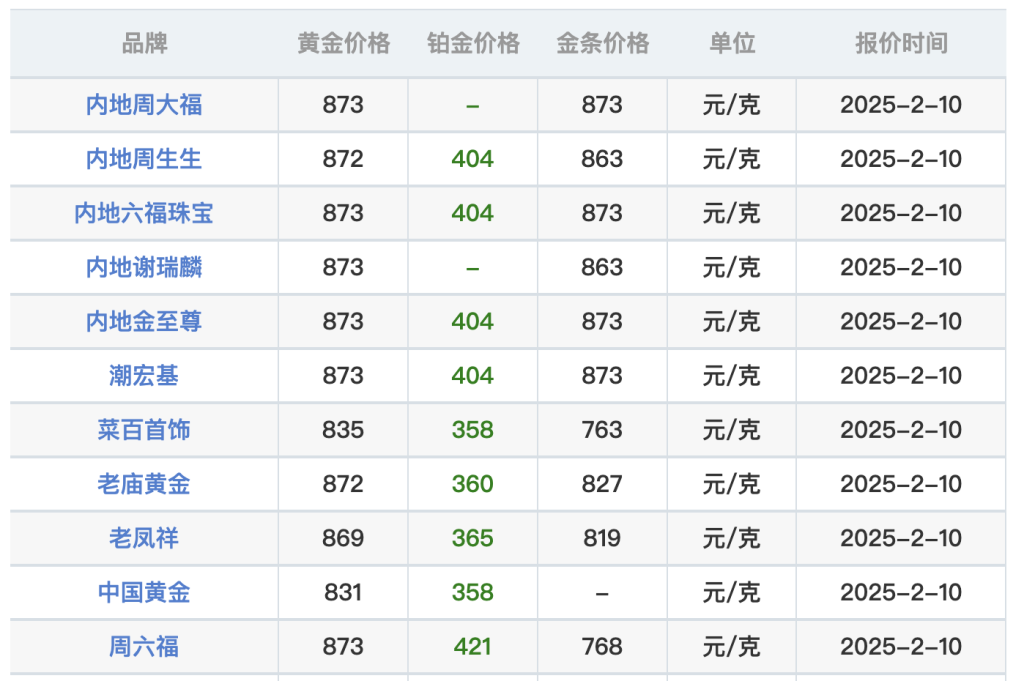 而在零售端,2月10日,周大福等品牌金店的足金饰品报价达每克873元,较1月1日报价上涨超70元,今年以来的累计涨幅超过9%。