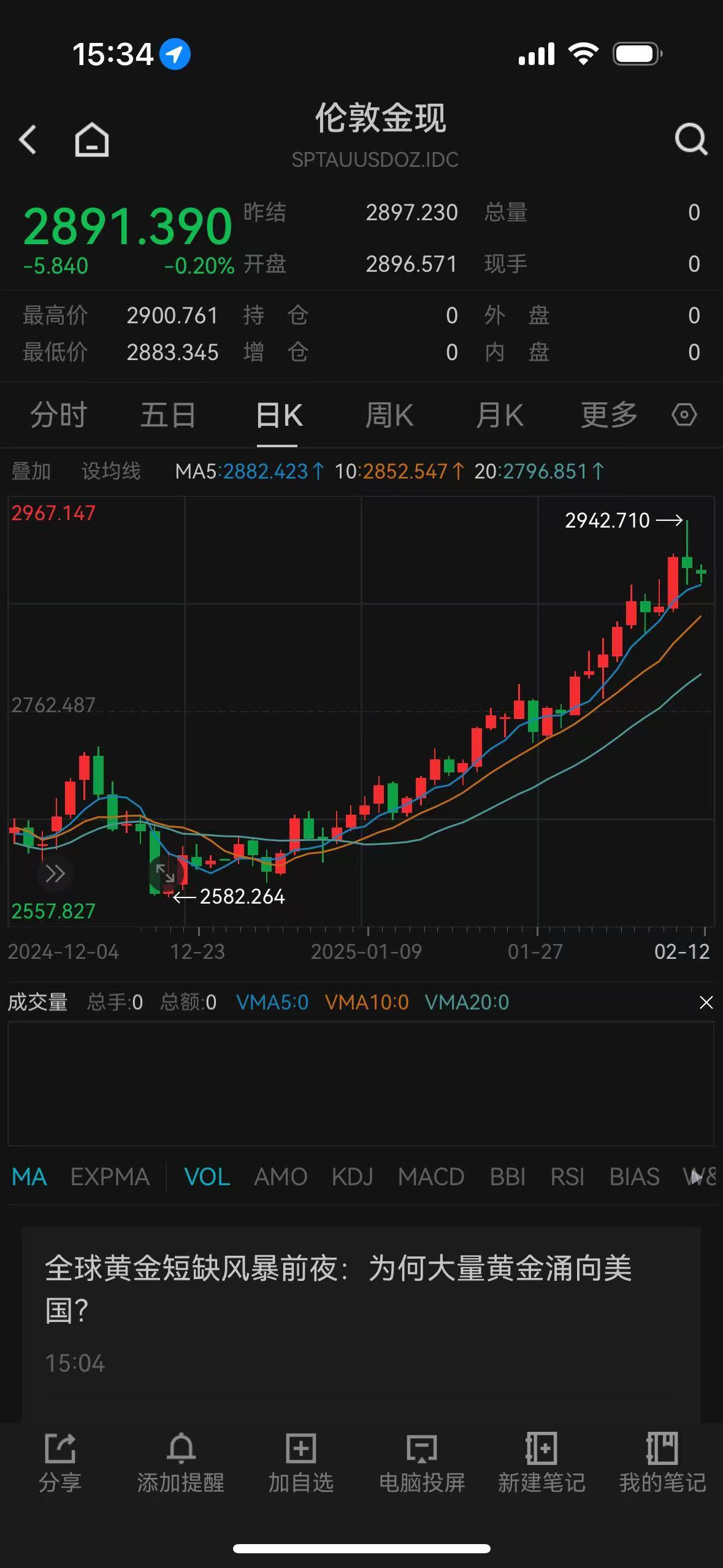 在连续创出新高之后,昨天,现货黄金价格波动极为剧烈,金价一度飙升至历史新高,但随着投资者获利了结,金价自高位大幅回落,最终当日收盘下跌,较日内触及的历史高位回落超60美元。今天,现货黄金依然小幅下跌,截至发稿时,还在2890美元/盎司附近徘徊,沪金在680元/克附近震荡。