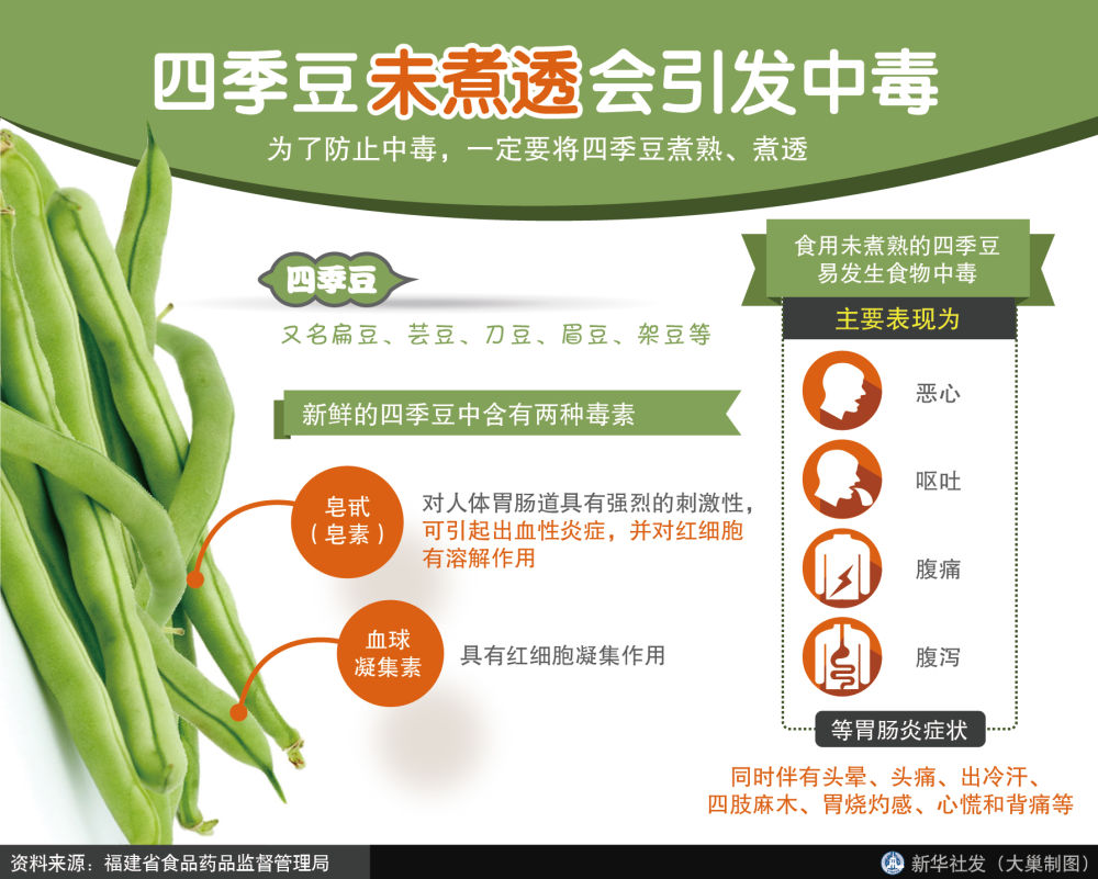 中国农业大学营养与食品安全博士后王国义解释,皂素主要存在于豆荚外皮中,对人体消化道黏膜有较强的刺激性,可引起胃肠道局部充血、肿胀甚至出血性炎症;红细胞凝集素则主要存在于豆粒中,能破坏红细胞并引发凝血,导致人体出现强烈的呕吐反应。