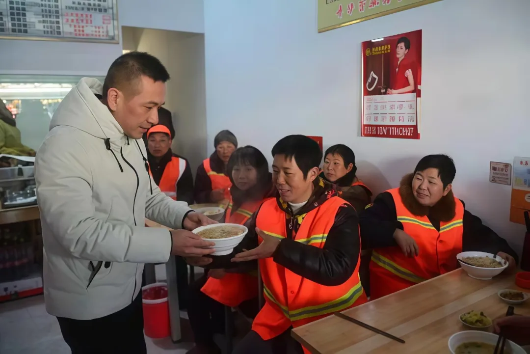 镇环卫所共有19名环卫工。每天清晨,他们来到“爱心驿站”,吃上一碗热乎乎的牛肉面,已然成为日常惯例。而这温馨的一幕幕,始于2019年1月那个寒风刺骨的冬日。彼时,盐城市大丰创意工艺品有限公司董事长王加森途经街头,见环卫工瑟缩于早餐店外搓手哈气,当即决定:“城市的体面,不能寒了他们的胃!”一个月后,“爱心驿站”灯箱在刘庄镇街头亮起。企业每年拨付专款,为全镇19名环卫工提供标配早餐,6年风雨无阻,累计送出超4万份。