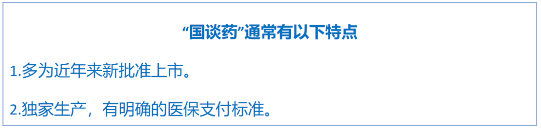 协议期内国家医保谈判药品(简称“国谈药”)是指医保部门与药品生产企业通过价格谈判,确定支付标准后,纳入医保目录报销并处于协议期内的药品。“国谈药”均为企业独家生产的药品,多数为创新药。