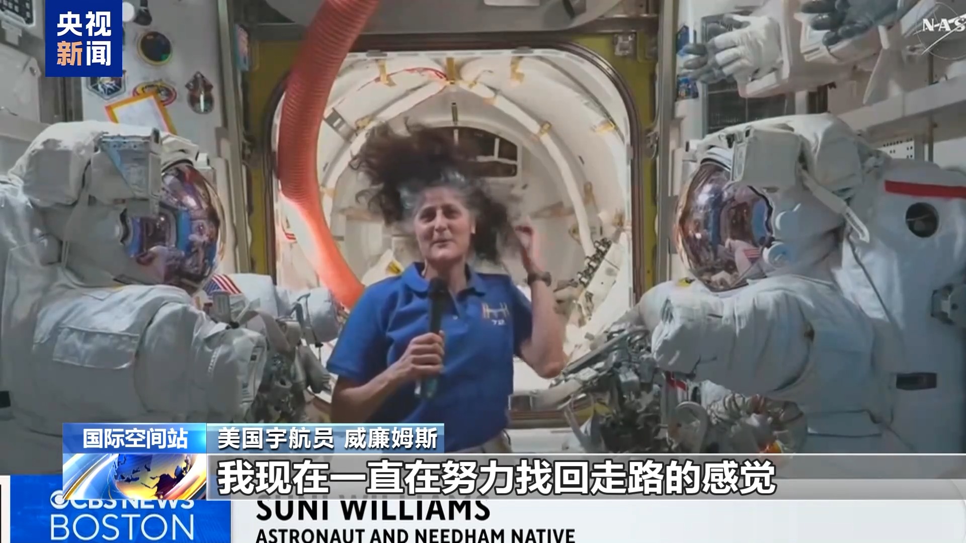 美国宇航员 威廉姆斯:我现在一直在努力找回走路的感觉,在太空我没走路,没坐下,也没有躺下。