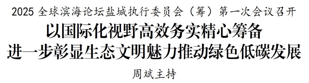 周斌在听取会议筹备工作汇报和交流发言后指出,全球滨海论坛会议是展示习近平生态文明思想的重要窗口,也是加强国际生态合作、推动盐城绿色低碳发展的重要平台。2025全球滨海论坛会议层次水平高、合作领域广泛,各级各部门要站在人与自然和谐共生的高度筹备好、举办好本次全球滨海论坛会议,进一步用好世界自然遗产、国际湿地城市、零碳园区等特色优势,着力打造新型国际化合作交流平台,合力推动会议在促进绿色发展、形成合作共识等方面取得更加丰硕成果。