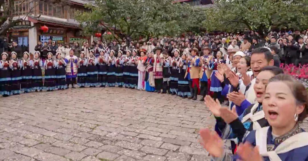 △3月19日,云南丽江古城各族群众热情欢迎习近平总书记。