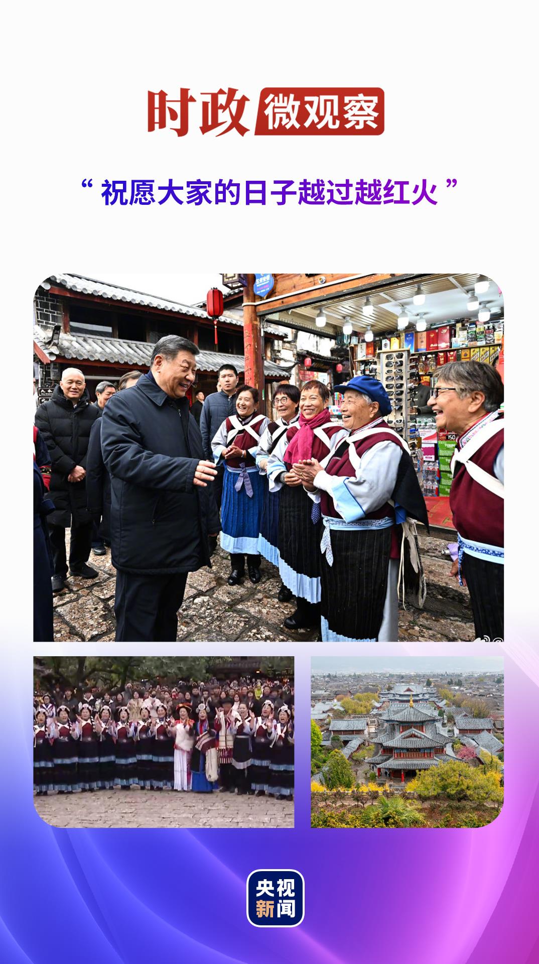 今年3月19日,习近平总书记再次来到云南考察,在丽江古城沿着石板路边走边看,不时停下脚步同大家亲切交流。古城居民和游客见到总书记十分兴奋,争相问好,有的还弹奏乐器、载歌载舞欢迎总书记。习近平总书记祝福大家,“希望你们的生活幸福安康,就像纳西族的大姓‘和’姓一样,和和美美”。