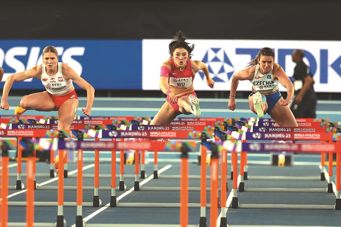 3月23日晚,吴艳妮在2025南京世界田联室内锦标赛女子60米栏半决赛比赛中。 记者 万程鹏/摄