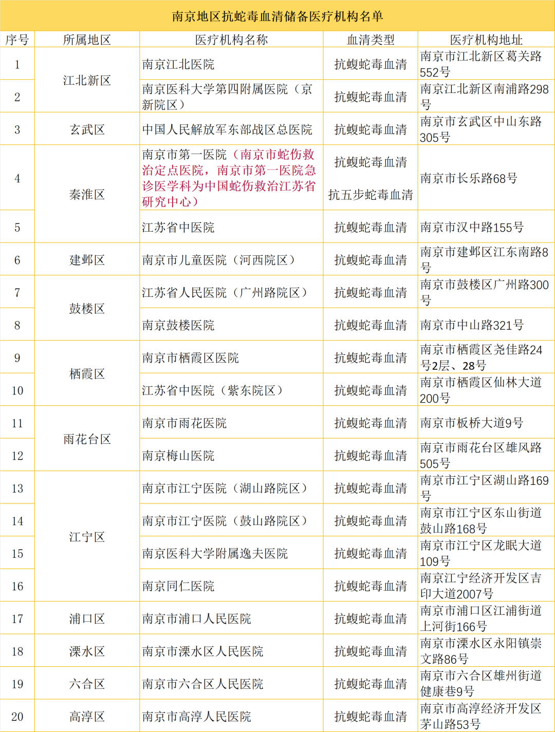 南京地区抗蛇毒血清储备