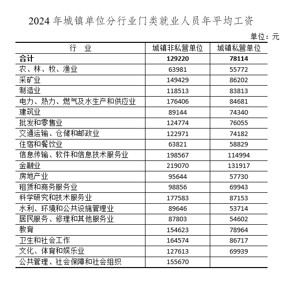 交汇点讯 6月19日,江苏省统计局发布2024年江苏省城镇单位就业人员年平均工资情况。数据显示,2024年,江苏省城镇非私营单位就业人员年平均工资为129220元,城镇私营单位就业人员年平均工资为78114元。