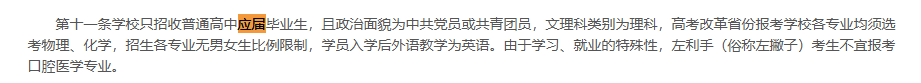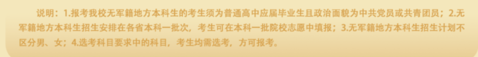 陆军军医大学(第三军医大学)2025年无军籍地方本科生招生章程明确:学校只招收符合生源地报名条件且为中共党员或者共青团员的普通高中应届毕业生。