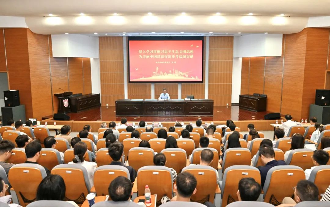 在盐城师范学院新长校区学术报告厅,周斌从坚持人民至上的价值立场、自信自立的精神品格、守正创新的理论特质、问题导向的实践要求、系统观念的科学方法、胸怀天下的情怀格局等方面,和大家一起畅谈学习习近平生态文明思想的感悟思考。他指出,习近平生态文明思想根植于中华优秀传统文化的深厚底蕴,蕴含对生态治理需求的深刻观照,承载着一代代中国共产党人对人与自然和谐共生的执着探索,是习近平新时代中国特色社会主义思想的重要组成部分。我们要深刻领悟其中的丰富内涵,更加自觉用以武装头脑、指导实践、推动工作,奋力谱写美丽中国建设新篇章。