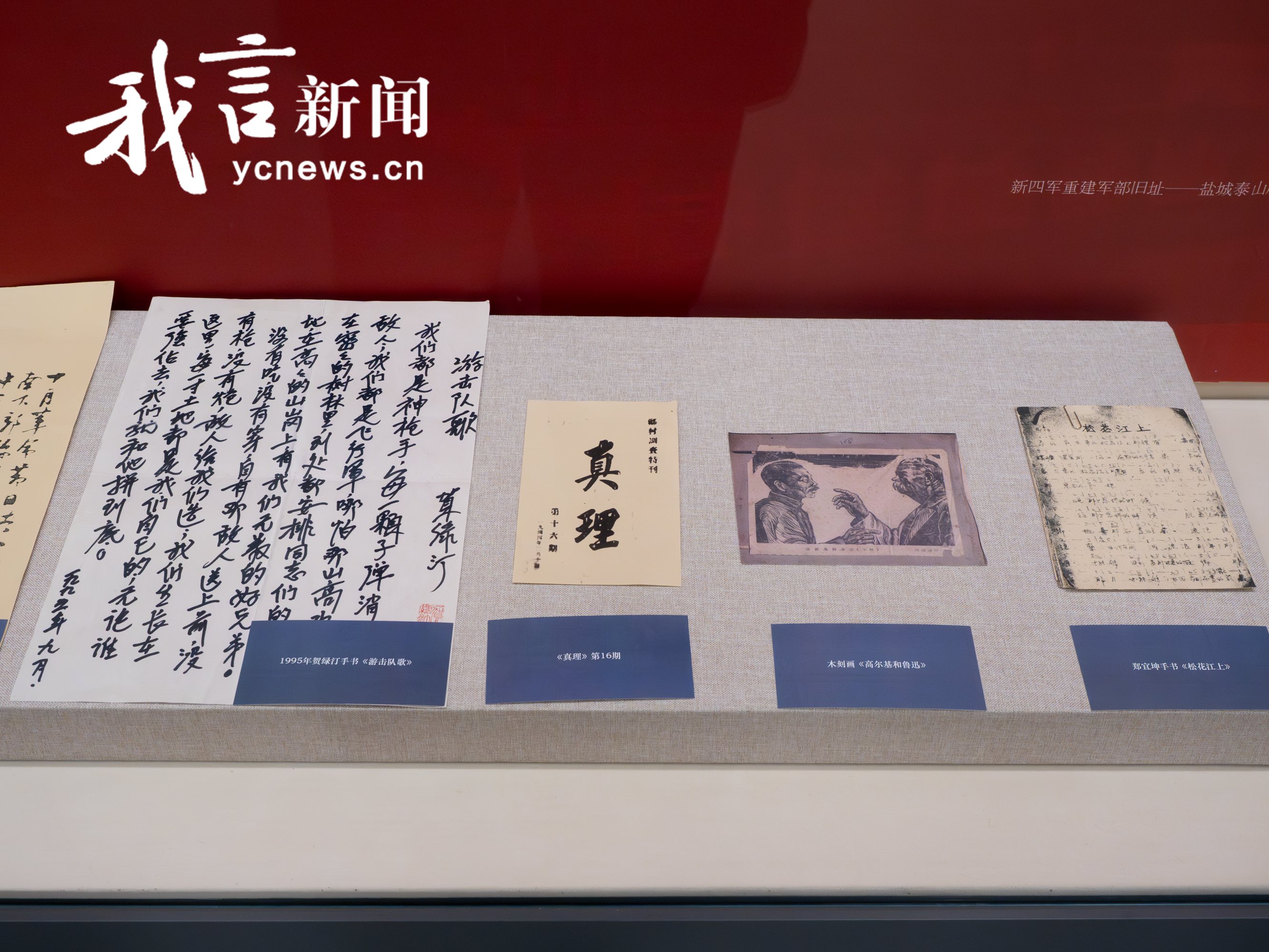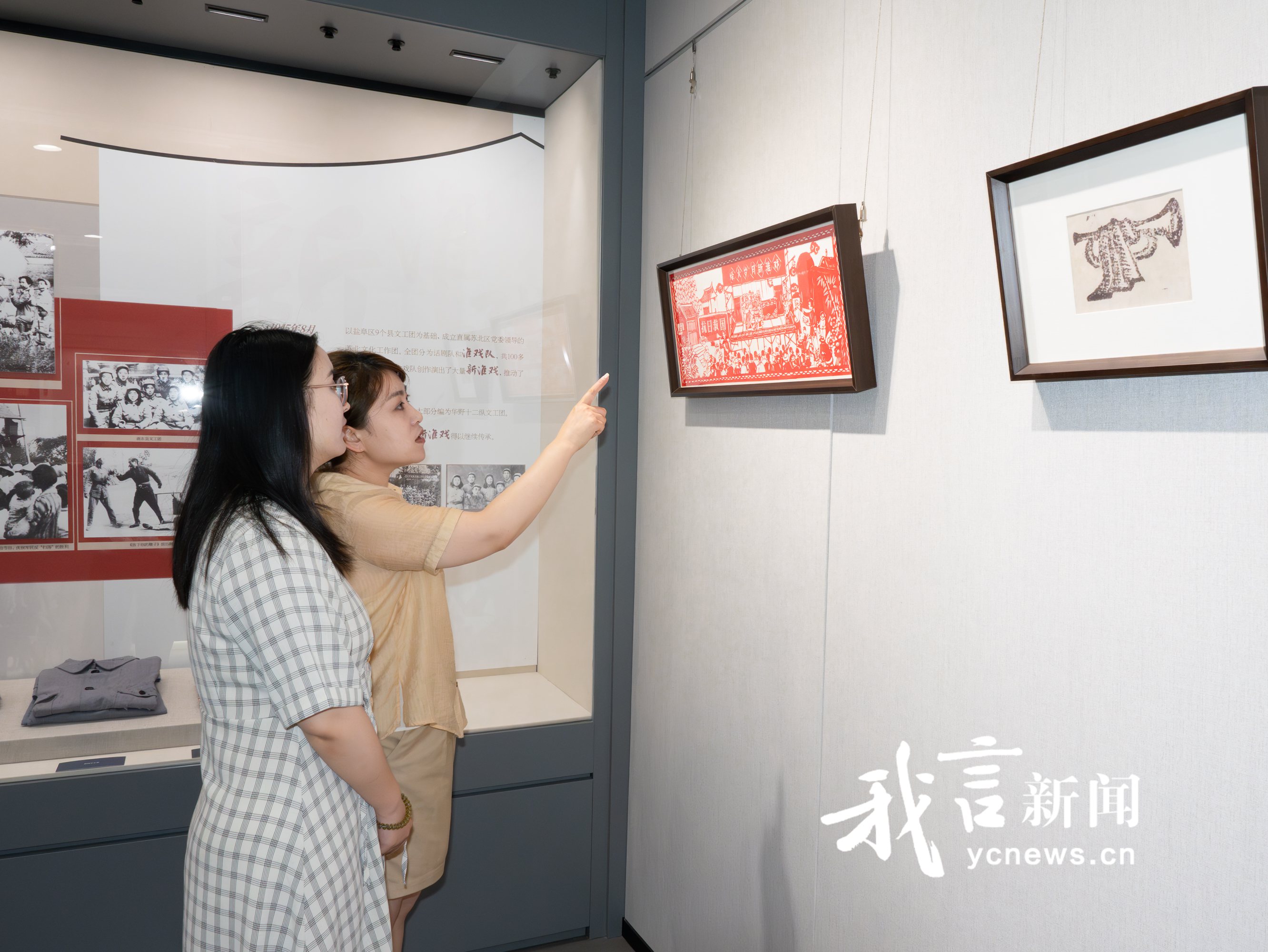 淮剧2008年被列入第二批国家级非物质文化遗产名录,承载着江淮文化的艺术精髓,铭刻着新四军与盐阜人民的鱼水深情。本次展览共分为三个部分,全方位展现淮剧在抗战时期及新时代的发展脉络。第一部分“烽火淬戏”,详细讲述了抗战期间新淮戏改革的背景及内容。1941年,新四军军部在盐城重建,刘少奇、陈毅发起“新文化运动”,盐城汇聚了大批文化界人士,成为华中敌后抗战的文化中心。鲁迅艺术学院华中分院的成立,更为抗战艺术人才培养奠定了基础。在毛泽东《在延安文艺座谈会上的讲话》精神指引下,淮戏进行了新题材、新形式、新曲调三方面的改革,催生了“新淮戏”,使其成为宣传抗战、动员群众的有力武器,如黄其明创作的《照减不误》,将现代人物和现实生活故事搬上舞台,反响热烈。