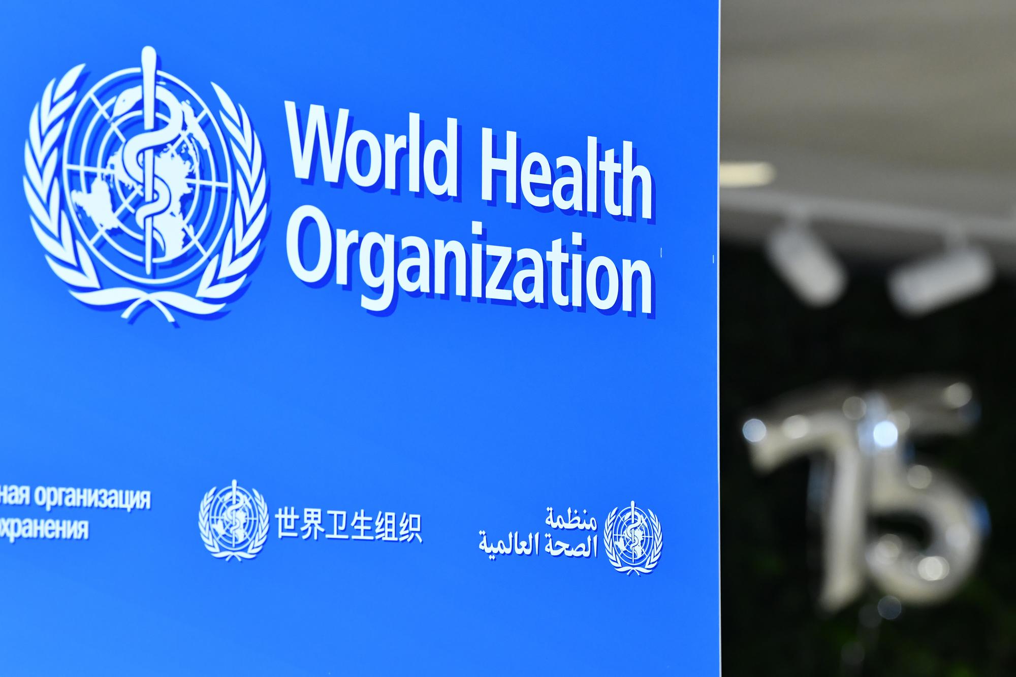这是2023年4月6日在瑞士日内瓦世界卫生组织总部拍摄的世卫组织标识。新华社记者连漪摄