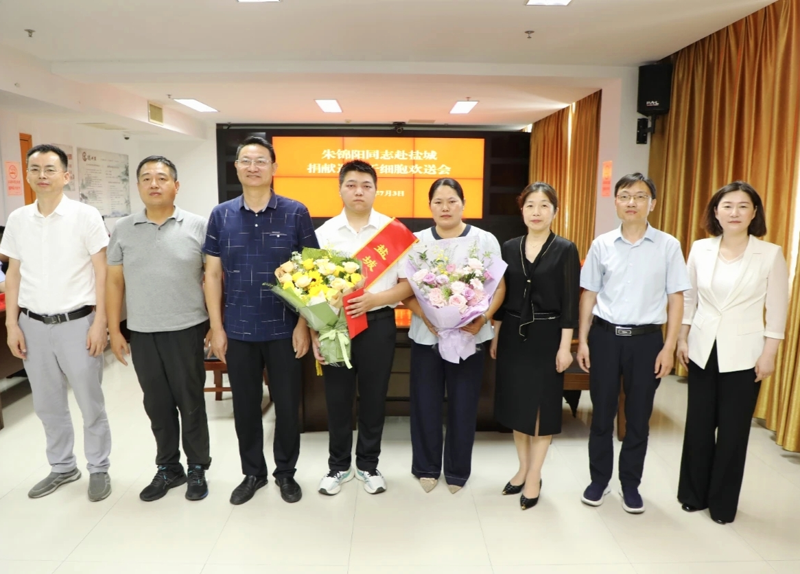 欢送仪式上,该县领导对朱锦阳的大爱义举表示高度赞赏,向其表达崇高敬意和诚挚感谢,同时为他披上爱心大使绶带,并送上鲜花。一个月前,朱锦阳从县红十字会得知自己的干细胞血样与一名白血病患者初配成功的消息,他毫不犹豫作出尽快捐献救人的决定。近期,朱锦阳顺利通过高分辨配型和体检合格等流程,他将于7月14日在盐城第一人民医院为一名白血病患者捐献造血干细胞。他也将成为阜宁县第7例造血干细胞捐献者,同时也是该县首位“00后”退役军人捐献者。
