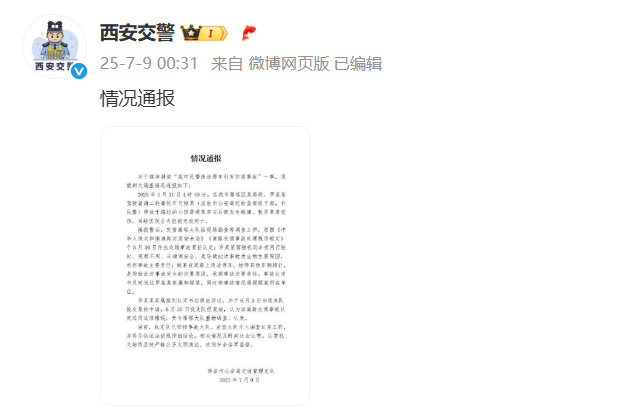 关于媒体报道“民警违法停车引发交通事故”一事,7月9日,西安交警发布情况通报: