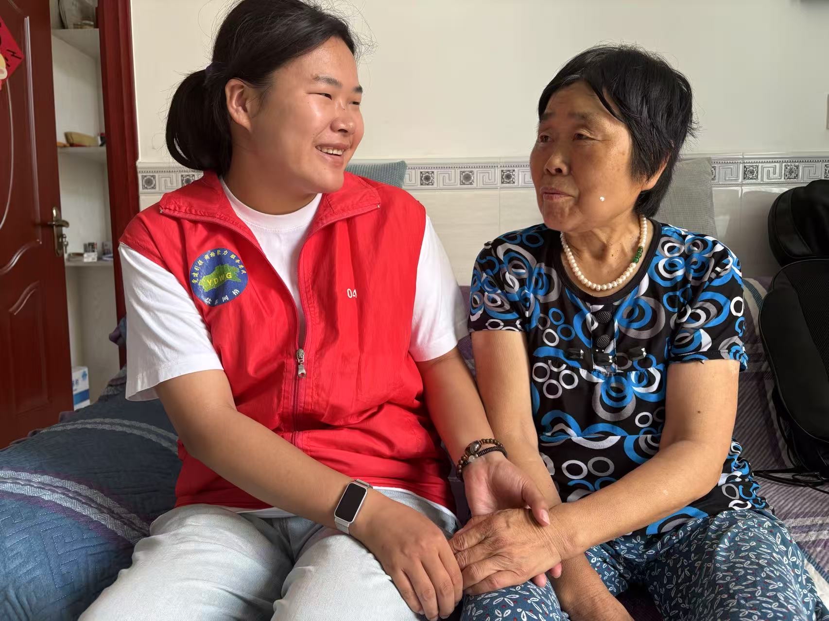 76岁的戴龙英患有慢性病,常常忘记服药。宋佳每天三次来到戴龙英家,倒茶给老人服药。春天的一个晚上,她像往常一样来到戴龙英家提醒服药,看到戴龙英躺在床上,她上前询问,发现她手心发烫,找来体温计为其量体温,确定发烧后,她立马电话联系戴龙英女儿。因戴龙英子女在外地工作赶不回来,她联系了网格对接的村医生,根据医生指导,找到退热贴贴上,还照顾了戴龙英一夜,老人在天亮前体温终于恢复正常。