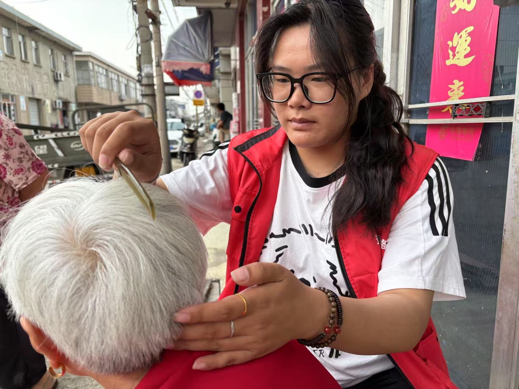 成为网格员一年多来,宋佳以村民为亲,常常走进村里家中,特别是到独居、空巢老人家中,陪他们唠唠家常,帮忙购置生活用品、打扫屋子、梳头洗衣服等,还帮助老人缴纳医保、调空调、修手机。