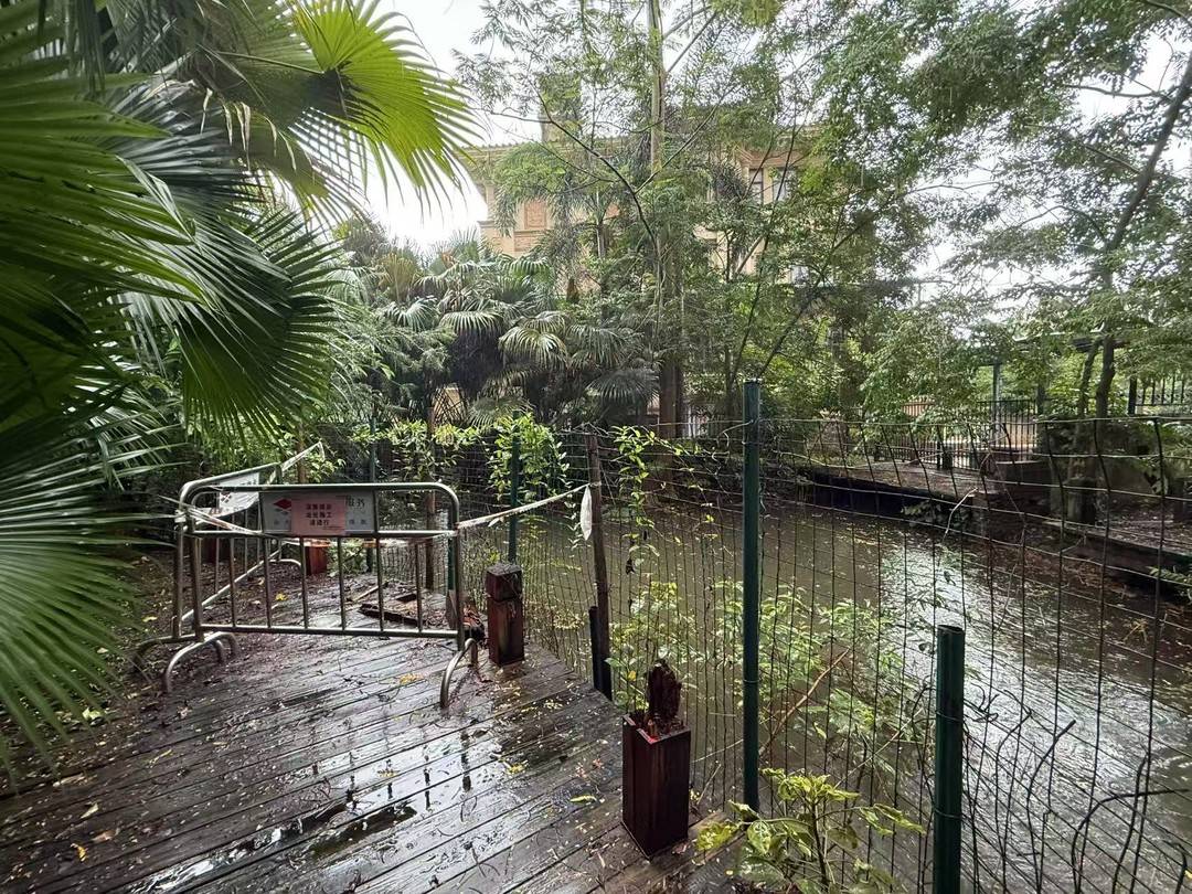 7月12日,记者来到图片中的位置,相较网传图片,该地绿植长高了,将别墅部分区域遮挡。黄杨钿甜拍照处的防护栅栏出现老化,管理单位正在更换新的栅栏,并张贴有温馨提示:此处施工,请绕行。