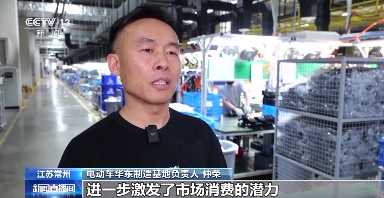电动车企业华东制造基地负责人 仲荣:今年销售火爆主要得益于以旧换新政策进一步激发了市场消费的潜能,我们紧紧抓住了年轻消费群体的新需求,在智能化上下功夫。比如,通过手机蓝牙可以实现无钥匙启动;导航地图直接投屏到仪表盘上,这些智能化的功能都受到年轻人的喜欢。