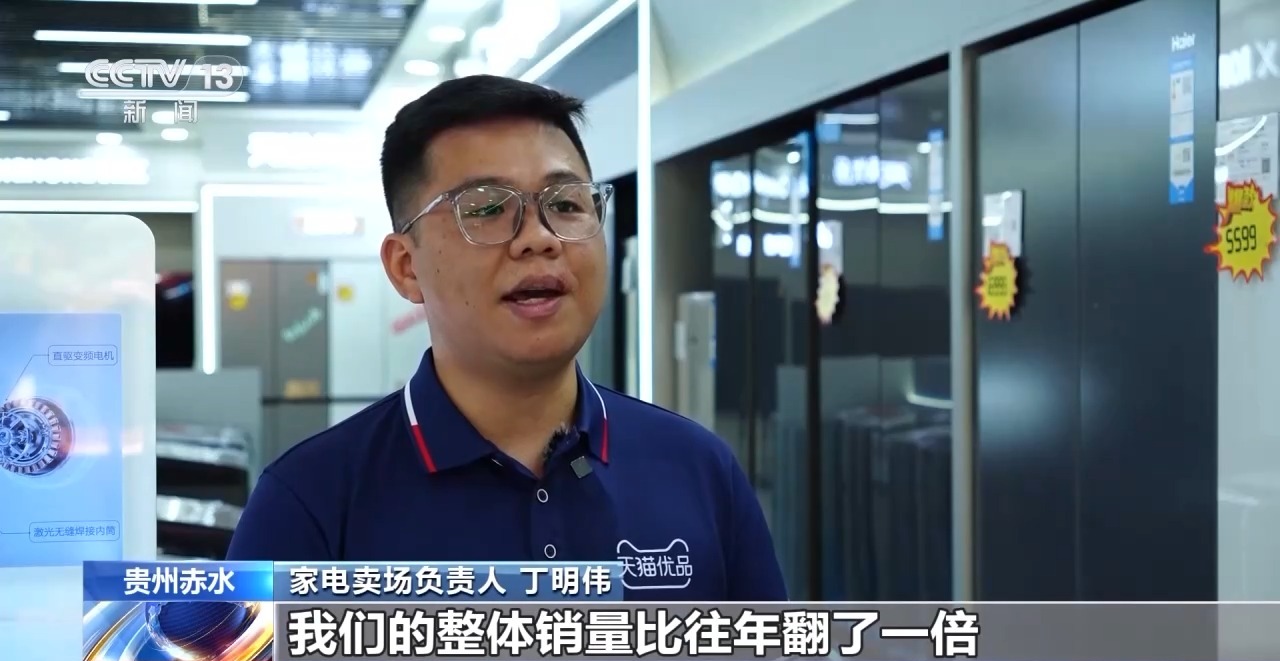 家电卖场负责人 丁明伟:有了“国补”政策之后,我们的整体销量比往年翻了一倍。大尺寸的电视、大尺寸的嵌入式冰箱,以及洗烘套装、全屋净水这一类能够提升生活品质的家电,整体的销量初步统计提升了20%左右。