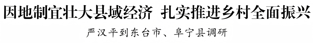 近日,市委副书记、代市长严汉平先后到东台市和阜宁县调研,强调要深入学习贯彻习近平总书记对江苏工作重要讲话精神,充分发挥资源禀赋和比较优势,全力做大做强县域经济,扎实推进乡村全面振兴,在推进中国式现代化盐城新实践中展现更大作为。