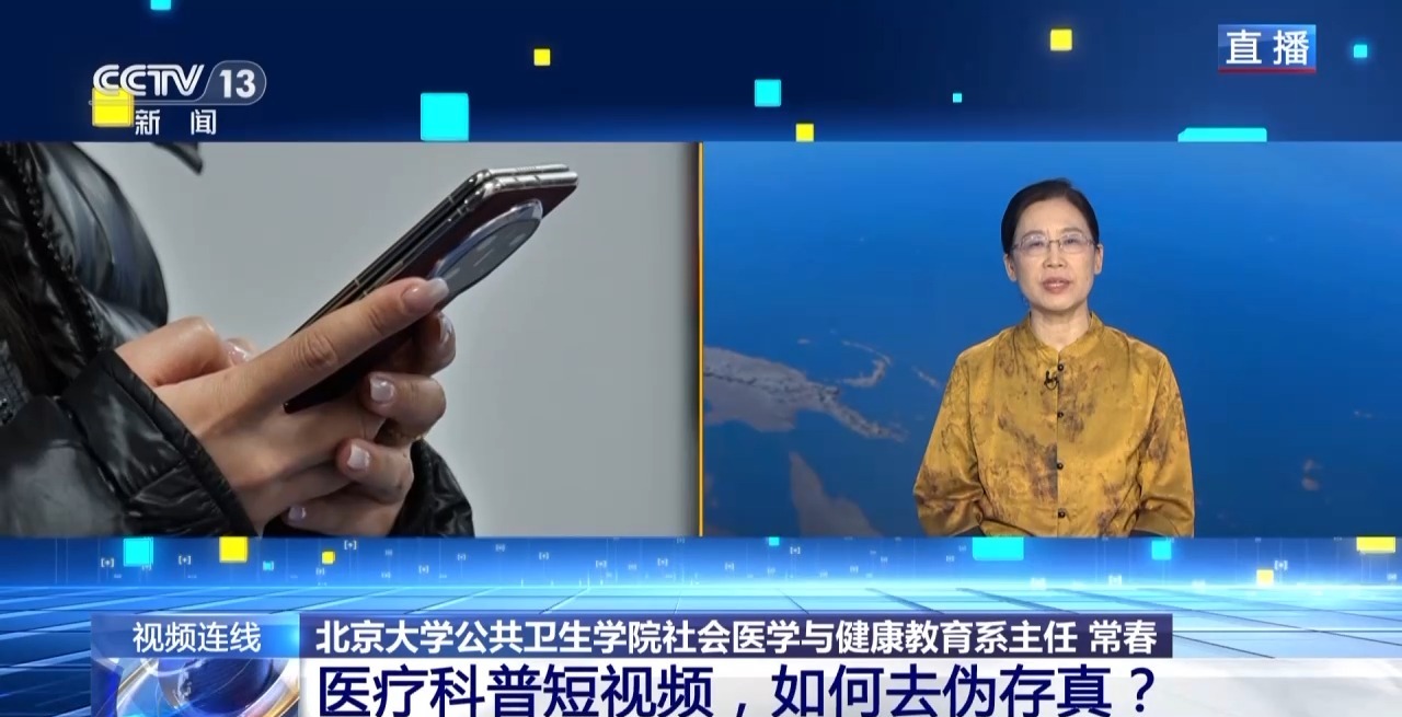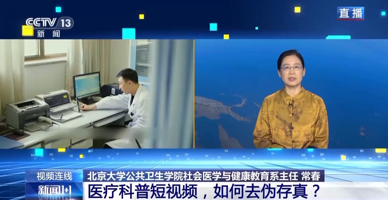 北京大学公共卫生学院社会医学与健康教育系的主任 常春:我们优良的医疗科普作品还是比较有限,还不能够很好地满足老百姓的需求。这样一些优质的医疗科普的来源,其实最可靠的就应该是我们的医务人员,还有我们的医疗机构。